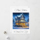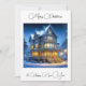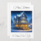 Tarjeta de Navidad personalizada con una casa victoriana iluminada.