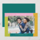 Una toma vibrante y moderna de la clásica tarjeta de vacaciones. Bloques de color rosa suave, chartreuse y azul turquesa enmarcan tu foto favorita para un look alegre y contemporáneo. Perfecto para parejas, amigos o familias que aman el diseño audaz y minimalista.