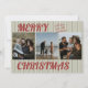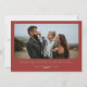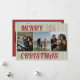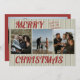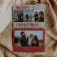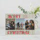 Esta tarjeta plana retro vintage de Navidad con doble cara presenta rayas verdes, tipografía roja y fotos familiares. Inserta tus fotos favoritas y personalízala a tu gusto. Fotos de prostooleh / Freepik.