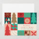 Este diseño combina formas geométricas y símbolos navideños como árboles y copos de nieve en colores vibrantes. Perfecto para enviar deseos modernos de Navidad, captura el espíritu de la temporada con un estilo audaz y artístico.
