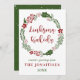 Corona de Navidad verde y roja de vacaciones tarjeta de vacaciones, con las palabras Feliz Navidad en lituano: Linksmų Kalėdų.