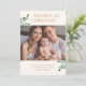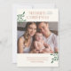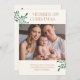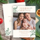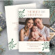 Hermosa y fresca tarjeta de felicitación de Navidad. Este diseño moderno y juvenil presenta un conjunto de fuentes contemporáneas, una foto y texto personalizable en la parte delantera y trasera de la tarjeta. Los fondos tanto en la parte delantera como en la trasera son blancos con acentos de vegetación fresca y joven. Personalice y haga suya esta tarjeta.