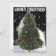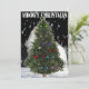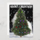 Un gato escondiéndose detrás de un árbol de Navidad decorado con ojos de gato