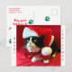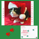 Esta tarjeta postal de Navidad de gato adorable Meowy presenta un gatito esmoquin con un sombrero de Santa sentado sobre un fondo de terciopelo rojo. Las palabras "MEOWY" aparecen a la izquierda y "CHRISTMAS" aparecen a la derecha. En el reverso de la postal puede personalizar su dirección. Un sentimiento de gato lindo aparece en el reverso de la postal también. Incluso puede personalizar los apellidos de su familia en esta encantadora tarjeta postal. La mejor parte es que algunas pequeñas patas de gato verdes lindas aparecen a lo largo de la parte posterior, así que quizás el gatito ha puesto su sello en esta hermosa tarjeta. Esta es una excelente tarjeta de Navidad para enviar a los amantes de los gatos. Copyright peachesthetuxedocat