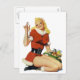 Imagen del perno-para arriba del vintage de una edad clásica. Una diversión, imagen descarada de una actitud modela retra. Chica modelo que presenta en un equipo de señora Clause Christmas.