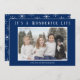 Envía alegría navideña con estas tarjetas de Navidad minimalistas. Un diseño moderno y simple que incluye la foto de tu familia y el mensaje "Es una vida maravillosa" en blanco sobre un fondo azul marino. La parte trasera tiene copos de nieve blancos sobre un fondo azul marino. Puedes cambiar el color del texto y los colores de fondo haciendo clic en el botón "personalizar".