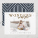 Tarjeta de Navidad moderna religiosa chic oro multi foto. Parte de una colección. El texto y el color del respaldo geométrico pueden cambiarse. Diseño elegante y sofisticado.