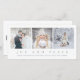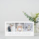 Esta tarjeta de Navidad elegante, simple ofrece tres de sus fotos personales, y las palabras "alegría y paz" en texto gris moderno.