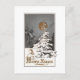 Una Feliz Navidad Una luna de oro brilla en casas cubiertas de nieve y árboles en esta vintage postal de Navidad de 1910.