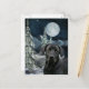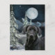 Labrador retriever negro en el navidad nevoso que fija debajo de una postal del día de fiesta de la Luna Llena