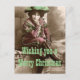 Foto del vintage de una "vaquera" en equipo adornado y franjado. El gorra occidental se dobla y está doblado de los ángulos. Colorized en color de malva y verde. El navidad adaptable desea en la parte inferior