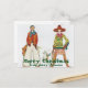 Diviértase cierto este navidad. Hombre y mujer en "desgaste occidental moderno" - si eso incluye una falda de tela escocesa con su cuerda, gorra grande y pañuelo. Navidad adaptable que saluda en la parte inferior.