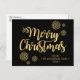 Tarjetas postales personalizadas modernas para la época navideña. Añade tu nombre y mensaje en el dorso. Letra de caligrafía con brillo de oro falso sobre fondo negro (se puede cambiar el color). Copos de nieve, patrón de diseño de nieve. Personaliza esta postal para enviar a familiares y amigos. Recuerdos familiares perfectos.