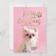 Difunde alegría con esta tarjeta de foto moderna y elegante con tema de mascota navideña, perfecta para amantes de perros y gatos. Cuenta con una superposición de palabras "Merry Christmas" en una tipografía moderna de estilo manuscrito y una huella de pata a juego en lámina de oro falsa. Agrega 2 fotos O mantén a Sparkle the Tiny Chi para un glamour adicional y tu mensaje personal en este diseño de foto de mascota navideña chic y divertido, y hazlo tu propia tarjeta de Navidad original única. Segunda foto en la parte posterior. CONSEJO DE FOTO: Pre-recorta tu foto de manera similar a las fotos de la plantilla ANTES de subirla y/o usa la herramienta de RECORTE en la sección PERSONALIZAR para ajustar la ubicación dentro del área de la plantilla. Para obtener ayuda con el diseño o la personalización o para transferir el diseño a otro producto, contacta al diseñador ANTES DE REALIZAR EL PEDIDO a través de la pestaña de MENSAJE de chat de Zazz