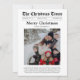 Celebra la alegría de la temporada con un toque personalizado que es tan único como la historia de tu familia. Nuestra Tarjeta de Navidad Personalizada, diseñada en un encantador formato de periódico, aporta un sentimiento nostálgico y emotivo a tus saludos navideños. La portada, titulada "The Christmas Times" en una fuente decorativa vintage, captura al instante la esencia de una Navidad clásica, preparando el escenario para un mensaje que es a la vez atemporal y sincero. Justo debajo, el saludo festivo de tu familia, "Feliz Navidad", se muestra de manera prominente junto al nombre de tu familia, añadiendo un toque cálido y personal que hace que esta tarjeta sea verdaderamente especial.