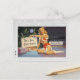 Postal que ofrece un ilustracion de los años 50 del vintage de un chica modelo en un juego de Santa. ¡Retro refresqúese!