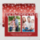 Encantadora y elegante tarjeta de saludo de Navidad para la familia. Cuenta con ramas de pino blancas sobre fondo rojo, dos fotos con marco blanco; en el reverso copos de nieve sobre gradiente rojo. Utilice Personalizar también; para agregar su información. Más ideas en mi Colección de Fotos de Vacaciones.