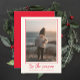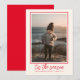 Celebre la temporada con encanto y elegancia utilizando nuestra Tarjeta de Navidad Personalizada Elegante y Moderna con un toque Cute Rojo. Esta tarjeta minimalista y con clase muestra hermosamente su foto familiar favorita con un diseño simple de una sola foto. La tipografía de letra manuscrita añade un toque de calidez y sofisticación, perfecta para aquellos que buscan un saludo navideño limpio y minimalista. El fondo rojo intenso realza el ambiente festivo, creando un contraste impresionante con su retrato familiar moderno.