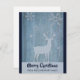 Una tarjeta de Navidad plana personalizada con tu nombre y mensaje en el reverso. Diseñada con un fondo de madera falsa de tono azul. Superpuesta en la parte superior hay una silueta de un reno con grandes cuernos y algunos copos de nieve y estrellas cayendo alrededor de él.