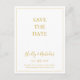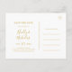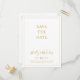 Esta simple tarjeta postal de guardar la fecha de Navidad blanca es perfecta para su boda de invierno moderna minimalista. La clásica caligrafía de lujo dorada, junto con el fondo blanco tradicional, todo bordeado con un marco minimalista, seguramente completará el colorido ambiente festivo que está buscando. Puede personalizar con sus propias fotos o gráficos o dejarla tal como está. Asegúrese de revisar el resto de la colección para completar el tema de su boda.
