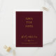 Esta simple tarjeta postal de Navidad roja para guardar la fecha es perfecta para su boda de invierno minimalista moderna. La clásica caligrafía de lujo dorada, junto con el fondo rojo tradicional, todo bordeado con un marco minimalista, seguramente completará el colorido ambiente festivo que está buscando. Puede personalizarla con sus propias fotos o gráficos o dejarla tal como está. Asegúrese de revisar el resto de la colección para completar el tema de su boda.