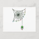 Una araña adornada con un color verde adorable y espeluznante cuelga de su telaraña de esquina sosteniendo un adorno. La telaraña está cubierta de luces Navidades brillantes. Gran giro en una imagen tradicional de vacaciones, de Briana Blair.