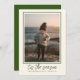Comparte la alegría de las fiestas con nuestra tarjeta de Navidad personalizada elegante y elegante de color verde. Esta tarjeta encarna un diseño moderno minimalista y clásico, que presenta un hermoso retrato de familia como centro de atención. Con su sencillo diseño de una sola foto y estilo limpio y minimalista, permite que tus saludos de fiesta brillen de la manera más elegante. La tipografía de letra manuscrita añade un toque encantador y sofisticado, perfecto para aquellos que aman el equilibrio entre la simplicidad moderna y el calor festivo.