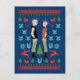 Un diseño del modelo del "suéter feo" del navidad con dos personas de punta-haired, cráneos y bandera pirata y diversos iconos hivernales, en las camisetas, suda, las tarjetas, regalos.