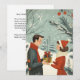 Celebra el amor y la temporada navideña con esta encantadora tarjeta de Navidad vintage, perfecta para recién casados o parejas. Con una ilustración de una pareja intercambiando un regalo bellamente envuelto en un paisaje invernal nevado, esta tarjeta captura la alegría de estar "alegre y casado" durante las fiestas. El diseño retro, los colores cálidos y el ambiente nostálgico la convierten en una forma encantadora de compartir tus deseos festivos. Ideal para enviar saludos sinceros a seres queridos o como recuerdo para tus propias memorias especiales de las fiestas. La parte posterior incluye una plantilla de mensaje para una fácil personalización o una nota manuscrita.