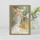Ilustracion de época Navidades victorianos religiosos imagen de festividad con un ángel con alas y un peine con estrellas de oro flotando y sosteniendo un árbol de Navidad. Una mujer angélica con una iglesia, carruaje y luna llena en el fondo. El texto dice "Feliz Navidad".