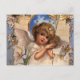 Imagen de la festividad de los Navidades de la era victoriana de ilustracion vintage con un ángel hermoso. Este cherub angélico está rodeado de hiedra, flores, estrellas y campanas.