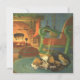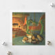 Ilustracion de época. Imagen de feriado navideño con mascotas de la familia durmiendo junto al fuego esperando que Papá Noel bajara por la chimenea. El adorable perro cachorro beagle, adorable gato de tabby y querido ratoncito se duerme junto al mecedor de la sala.