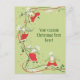 ¡Tarjeta postal fácil para Navidades personalizares! Haga clic en el botón "personalizar" para cambiar o agregar texto. Ilustracion de la Vintage. Imagen de feriado de Navidad con un alegre Santa Claus que sirve a un Navidad fiesta de cena de pavo. El chef está bailando con la comida. Un toque retro con este Santa kitsch de los años 50 en sus pantalones rojos con tirantes y el gorra del chef con detalles de cinta roja y verde, árboles, agujas de pino y flúor de nieve. ¡Ho ho ho ho y Merry Christmas!