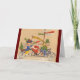 Tarjetas de Navidad fáciles de personalizar, sólo tienes que añadir tu propio mensaje especial! Ilustracion de época Victorian Era Feliz Navidad imagen de Santa Claus sentada en el centro de una bicicleta triple en tándem con otras dos personas. Todos están usando gorras y saludando. Los carteles en el post de la lámpara de la vieja usanza decían "Buena Suerte" "Buena Salud" y "Buena Salud". ¡Felices fiestas y saludos de temporada! ¡Ho, ho!