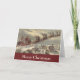 Tarjetas de Navidad fáciles de personalizar, sólo tienes que añadir tu propio mensaje especial! El ilustracion de época Victorian Feliz Navidad diseño con Santa Claus en el trineo con su reno entregando juguetes en la víspera de los Navidades. San Nicolás sobrevolando el cielo una ciudad con casas a la luz de la luna. Por Thomas Nast.