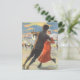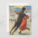 Ilustracion Vintage Feliz Navidad, imagen deportiva que presenta a un hombre y una mujer enamorados del patinaje sobre hielo. Amor y romance en el Día del Navidad. ¡Muy romántico!