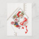 Imagen de feriado de Navidades de ilustracion de época que incluye un retro Santa Claus con latas de dulces, campanas de Navidades y un saco lleno de juguetes dentro de una forma de diamante con estrellas.