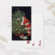 Ilustracion de época Diseño navideño Feliz Navidad con un alegre Santa Claus encendiendo velas en un árbol de Navidad decorado con regalos envueltos y regalos debajo. ¡Saludos de temporada y Felices Fiestas! ¡Ho, ho!
