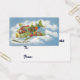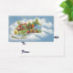 Tarjetas de diversión para usar como etiquetas de regalo para las vacaciones. O cambie el texto y los detalles para crear una tarjeta comercial única, personalizada y personalizado para sus necesidades específicas. Haga clic en el botón "personalizar" para acceder a todas las herramientas de diseño para cambiar el color de fondo o el estilo de fuente o color. Muchas fuentes para elegir!! Ilustracion de época Feliz Navidad viaje y diseño de transporte con un alegre Santa Claus volando un avión de hélice a la antigua en el cielo con elfos, juguetes, muñecas, regalos envueltos y un árbol de Navidad en el ala. Están volando el avión antiguo a través de las nubes blancas onduladas y las estrellas en el cielo azul sobre un bonito y pintoresco pueblo y bosque con árboles cubiertos de nieve en la temporada invernal.