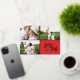 Navidades 3 fotos tipografía moderna tarjeta de vacaciones en rojo, Relieve metalizado y blanco. Diseño gráfico de diseño minimalista, parte de una colección. Disponible en otros colores.