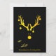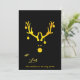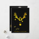 Una divertida y linda imagen abstracta moderna de una cabeza de reno en oro falso. Con adornos navideños, se colgaban de los cánticos. Fondo negro clásico, letras doradas y el texto: Con amor. Personalizar y añada su apellido. Atrás: un abstracto y brillante árbol de Navidad en oro falso. Color de fondo negro.