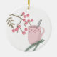 Acogedor adorno navideño, tazón de té y ramas sobre fondo blanco, decoración personalizada y hogareña de Navidades.