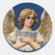 Hermoso ángel vintage de Navidad con túnicas azules y blancas y alas doradas. Frontera de oro. Perfecto para sellar sobres para tarjetas de vacaciones y para poner regalos para Navidades: echa un vistazo a los emparejamientos de papel, tarjetas y adornos en los diseños de derechos.