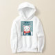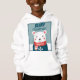 Navidades divertidos con capucha con un lindo oso blanco personalizado sobre un fondo nevado, con un suéter azul y bufanda roja. Personalizable fácil agregando el nombre de su hijo y los nombres de los otros miembros de la familia para un equipo familiar de Navidades divertidos. El pie de foto, con letras azules modernas, lee a los Navidades Beary.