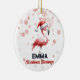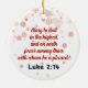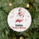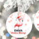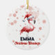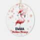 Ornamento cristiano personalizado, flamenco lindo con gorras Navidades, cita de la biblia en la espalda y fondo de nieve. Lucas 2:14 "¡Gloria a Dios en la más alta, y paz en la tierra entre los que le agradan!"