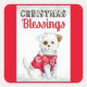 En este pegatina cuadrado de Navidades se muestra una imagen adorable de un perro lindo con un suéter rojo. Con mensaje, "Bendiciones de Navidades", este pegatina puede ser usado para ese correo especial, reserva de chatarra, decoración y más!