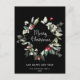 Esta carta de saludo de Navidades minimalistas presenta un marco botánico para Navidades con bayas rojas, hojas de vegetación exuberante y ramas verdes claras sobre el simple fondo negro. Por favor, sus seres queridos con esta elegante tarjeta de Navidades.