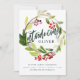 Navidades más hermosos acuarela botánica roja y verde presentando el anuncio de nacimiento tarjeta de vacaciones. Hermoso follaje pintado con acuarela y texto de escritura moderno. Parte de una colección.