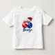 Un bebé de Navidades vestido con una gorra roja de caldo juega con un par de adornos de vacaciones y el texto dice "Alegría" en bolsas de personalizable, camisetas y otros artículos.