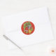 Pegatina de Navidad con campanas en rojo, azul y oro en grano y bayas.